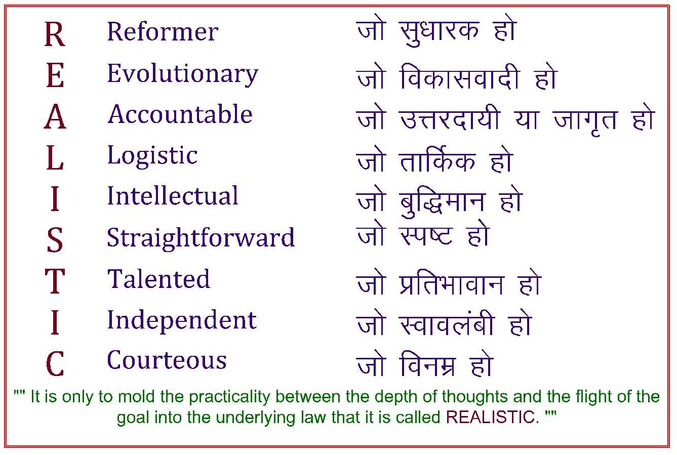 Definition of Realistic | यथार्थवादी का अर्थ
